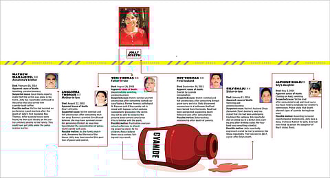 For years, perhaps the only thing Koodathayi was known for was through-traffic. Its proximity to state highway SH-34—the artery connecting hub towns Koyilandy and Edavanna—makes the village a mofussil pit-stop some 35 km from Kozhikode city in Kerala’s Malabar region. With a little over 13,000 people (Census 2011) calling Koodathayi home, ‘vajagam’ (idle chatter) is what passes for entertainment here. When villagers used to talk about Jolly Joseph, daughter-in-law of the prominent Ponnamattom family, it was generally in complimentary terms. Much like her business-owner husband’s parents, educationists Tom and Annamma Thomas, Jolly—ostensibly a commerce lecturer at the nearby National Institute of Technology, Calicut (NIT-C)—was accorded the high regard her station afforded her and was a familiar face at the Lourdes Matha Church. “She was very approachable and would go out of her way to talk to people,” says K.P. Kunhammad, a member of the village panchayat. The sudden deaths of Annamma in August 2002 and Tom in August 2008 did little to dent this public approval.