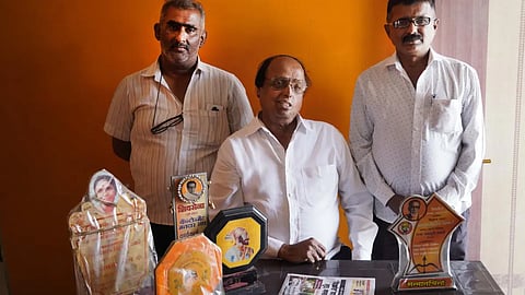 Sixty-five year old Rambhau Parikh sits on a steel cot in a room with saffron-coloured walls. There is a sofa placed on the opposite side of the cot. The wall behind the door has an altar with photographs and miniature figurines of Hindu gods and goddesses. The shelf above the altar running across this wall displays a medley of trophies, presented to Parikh by several organisations in appreciation of his work as a Shiv Sainik.