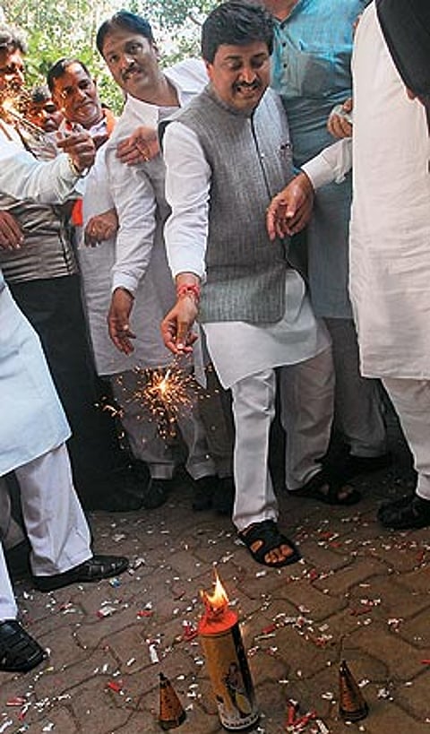 Bang on Maharashtra CM Ashok Chavan celebrates with a sparkler in Mumbai |
