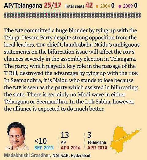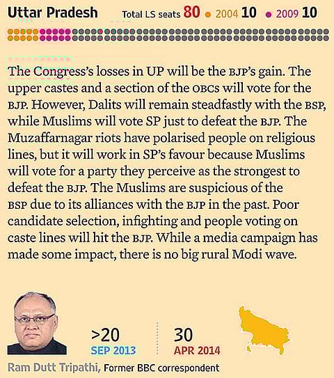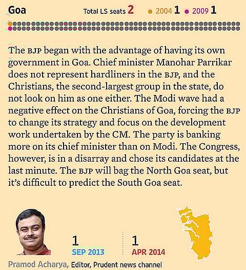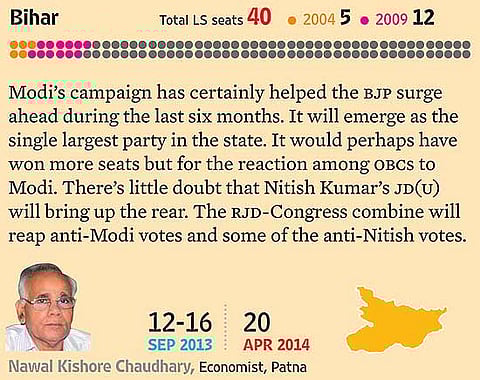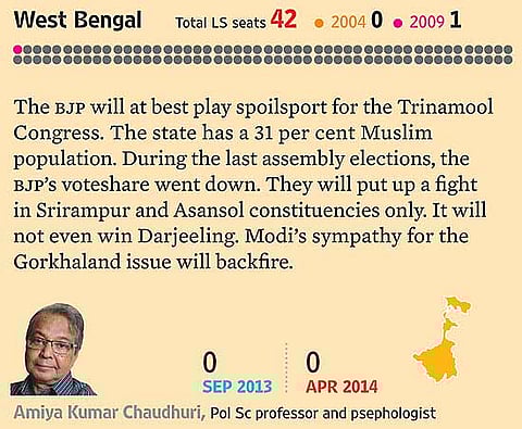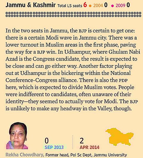 In September 2013, when Narendra Modi was anointed BJP’s PM candidate, we asked 29 experts—journalists, academics, analysts—in each of our 29 states to give us their best-case scenario for the NDA in 2014 in their states (see No, He Can’t). They came up with a figure of 187.