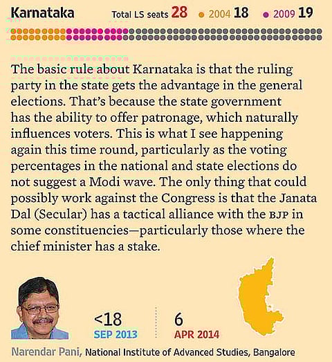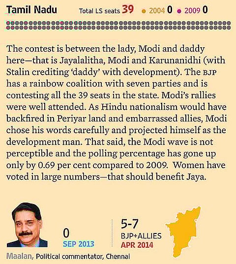 Not much trace of a ‘Modi wave’ in the four southern states. The BJP-led NDA tally still expected to stay around 30, out of the 129 seats