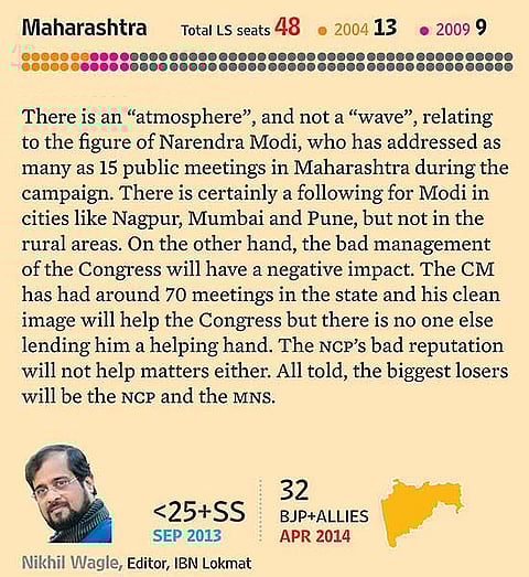 Despite question marks in Maharashtra, a 12-seat jump for the BJP-led NDA in the four western states, up from 56 to 68, out of the 101 seats on offer