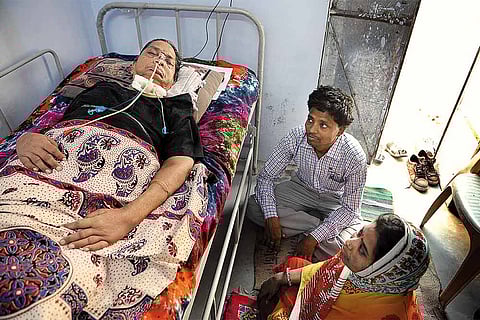 It’s evening in Karni colony, Jaipur—the sun is finally threatening to set. Govind, 30, is trying to quell the agitation welling up inside him, but in vain. The 8x8 ft rented room, with a sparse attached kitchen, costs him Rs 6,000 a month. Medicines are arranged neatly on a concrete slab, perhaps to soak up blessings from the gods they share the slab with. His sister and he have been praying. On one side, their mother Yashoda Devi lies motionless on a metal cot—her eyes open, a cooler easing her discomfort. A pipe runs up one of her nostrils, one down her throat. She has stopped speaking.