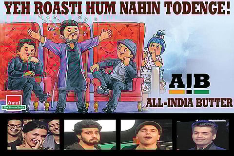 It seems India’s liking is for ‘toasted’ and not ‘roasted’, as comedy company AIB (All India Bakchod) found out recently, having to yank from YouTube their first attempt at ‘insult comedy’, or ‘celebrity roast’ as it’s known in the US. A Pune inspector who found it “obscene” lodged an FIR against not just the comic quartet and actors Ranveer SIngh and Arjun Kapoor (who were being ‘roasted’) but also Karan Johar, Deepika Padukone and critic Rajeev Masand who were in the audience. Censor Board member Ashok Pandit tweeted that Johar would be better off showing sexual positions at home. Criticised widely for alleged risque Catholic and other jokes, the company apologised to the community and were forgiven. Butterly Amul, though, seized yet another chance for an ad, this one seemingly supporting the AIB. Will we banish butter too?