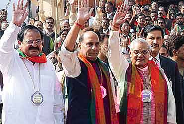 Quipped a BJP MP: "What Advaniji did was to make a unilateral declaration of his candidature for the prime ministership. It will be interesting to see if someone can become PM simply by wishing really hard to become one." Meanwhile, it is just beginning to dawn on the BJP that the real googly was delivered by Vajpayee. He stunned the gathering of the faithful and created a sensation by declaring that he was retiring from electoral politics. That's when many hadn't really expected him to contest another election or even to lead the BJP in campaign. Vajpayee had yet again stolen the thunder from Advani even though it was really much ado about nothing. But the characters of the BJP's Ramayana are still waiting for Parasuram to elaborate. When Outlook asked Rajnath to clarify which role he was playing, he replied after a silence: "I will say nothing on this matter."