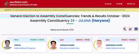 Though Vinesh won her constituency, Congress remained short of majority mark as BJP looked set to win Haryana, a state that the saffron party has ruled for the last 10 years.