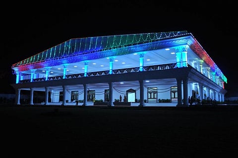 Located in the Greenlands area of Begumpet, the chief minister’s new residence designed by Shapoorji Palonji and Co. Ltd is spread across nine acres and has a built-up area of one lakh square feet, which is double the size of a football field.