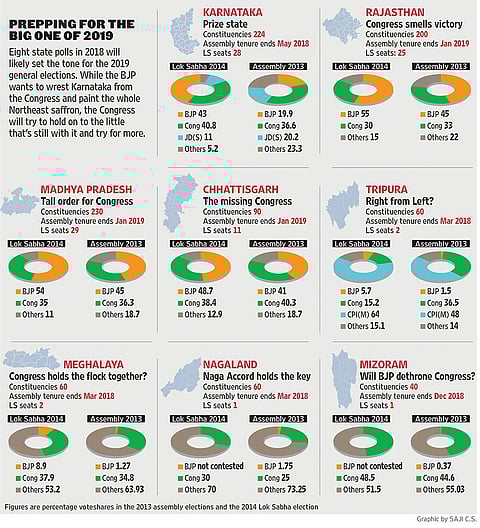 Before Rahul Gandhi left for Bahrain on January 7, his house at 12 Tughlak Lane—the Congress’s new power centre—was abuzz with activity. The party’s communication department members and some office-bearers were fine-tuning the strategy for poll-bound Karnataka. The new party president was insistent that they must learn from the Gujarat experience and strengthen booth management. The larger message was clear: Karnataka must be retained at any cost and the BJP denied an entry into the south through the state.