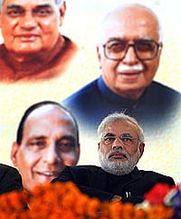 Advani, to his credit, handled the Modi mania quite deftly. During his hour-long concluding address, he suddenly digressed on to the subject of the Gujarat chief minister: "Someone said to me that Modi has become bigger than the party. I said to them that in a family if a youngster does better than the veterans it is a matter of great pride for the whole family. It's not something to try and create trouble about." Advani and Modi have had a good working relationship for years. Advani's Lok Sabha seat is Gandhinagar in Gujarat and he will also want Modi's backing during the next election campaign.