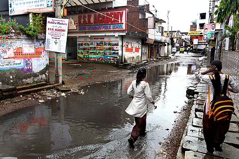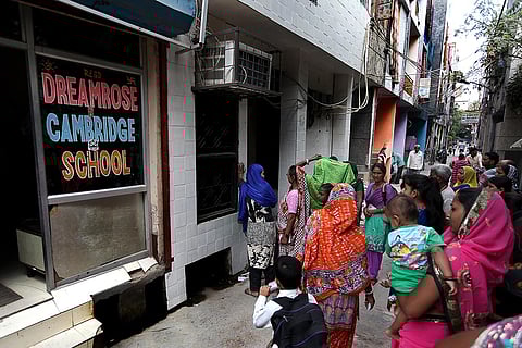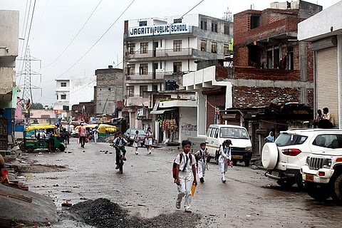 The students in sundry school uniforms make slow, complex motions—as if performing an avant-garde ballet—as they wade north on a road that often resembles a canal. Ratiya Road, a messy business in the best of times, has been done in by the rains. This is Delhi’s Sangam Vihar, an unauthorised colony and yet a full-fledged Vidhan Sabha constituency. There’s a sole government school catering to its million inhabitants—almost all children go to the many privately-owned ‘public’ schools that have mushroomed all over the place. That’s where they’re returning from in this afternoon drizzle, just off the traffic snarls on Mehrauli-Badarpur road, torsos bent forward with the weight of schoolbags, two fingers pinching the nose to thwart the putrid smell of the gutter overflowing into the roads, the free hand clutching leather shoes as they navigate past invisible potholes, eager to disappear into bylanes and doorways along the two-km-long road. A few men stand around leering at the rain-drenched uniforms of the girls; police constables sit comfortably inside the chowki.