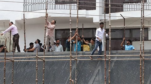 As the bulldozer arrived on Monday morning in Shaheen Bagh, along with it came a crowd of police and security forces to support the anti-encroachment drive, creating a hue and cry in the Kalindi Kunj-Jamia Nagar area. News had floated earlier that the South Delhi Municipal Corporation (SDMC) will carry out a demolition drive in the main market. The busy streets of Shaheen Bagh were soon buzzing with locals, activists and media, creating traffic in the noon. The bulldozer stood there, gheraoed by a swell of residents who came out to protest the demolition drive.