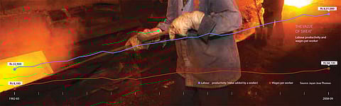 The new code on wages, second of four proposed legislations, says at least 30 per cent employees of an establishment—as against the current 10 per cent—must consent to forming a union. This, too, appears out of sync with reality. On the one hand, workers are having to strike work for the right to form unions (see box, on page 54); on the other, companies are trying to encourage contract workers—more job-insecure, typically paid less and with no collective strength. “In Haryana, Gujarat and Rajasthan, strikes are being noted, mainly because companies prefer the contracted to the salaried employee,” says Jayan Jose Thomas, assistant professor, economics, at IIT Delhi. “Some say, colonial-era laws need reforms, but their argument that labour law is the main obstruction to ‘Make in India’, because it makes it difficult to hire and fire, is wrong.”