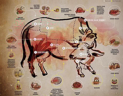 India’s buffalo meat production is 38 million tonnes, of which 20 lakh tonnes was consumed domestically in 2015. Cow beef is five per cent of the total meat production in India (GoI data).