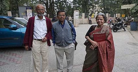 Ambikesh Mohapatra flanked by Gautam Gupta and Himani Bannerji at Jadavpur University.