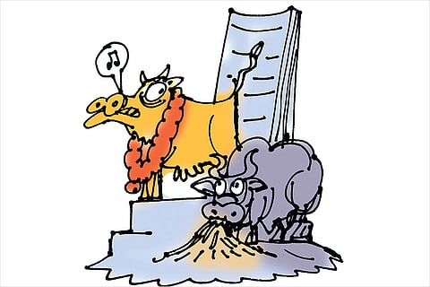 Bombay Stock Exchange (BSE) is usually considered to be the exclusive territory of the bears and the bulls, but it was the cow which was being feted in the country’s premier bourses. A six-hour seminar on the ‘glorious Indian cow’ held at BSE International Convention Hall under the aegis of BJP MP Subramanian Swamy’s Virat Hindustan Sangam saw around 600 ‘delegates’ —gaurakshaks, to be precise—being awarded for ‘saving the cows from being slaughtered’. According to reports, loud cheers of “Jai Gaumata” rent the air as speakers extolled the virtues of cow dung, urine, milk and ghee, quoting references to the mythical Nandi and Kamdhenu cows. The high-yield Jersey and HF breeds, source of commercial milk supply across India, were denigrated for “mutated genes”. Swamy, on this occasion, demanded capital punishment for cow slaughter.