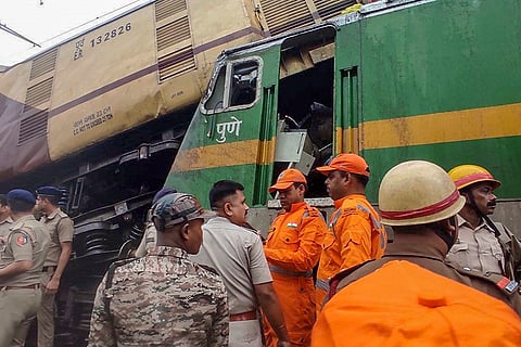 Rescue work underway after a collision between the Kanchanjungha Express and a goods train, near Rangapani railway station.