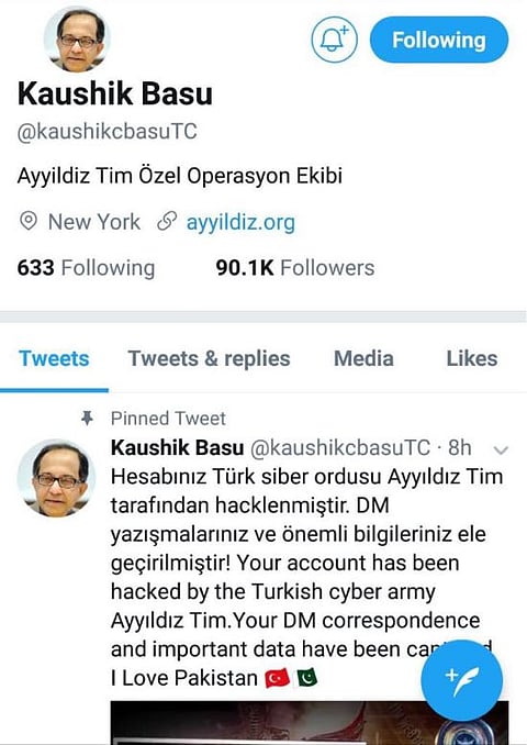 "Hello there! I want to introduce ourselves first. In 2002, the Republic of Turkey to protect it from cyber attacks and to combat terrorist organisations were founded. Turkey's first cyber army of. We have 300,000s (sic)", read a pinned tweet on Swapan Dasgupta's handle