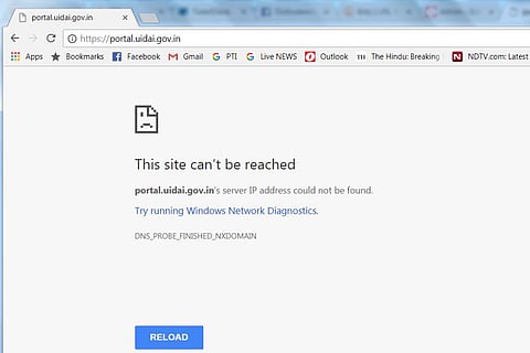 The website, https://portal.uidai.gov.in has been showing the message, ‘This site can’t be reached,’ after reports of data breach on the portal.