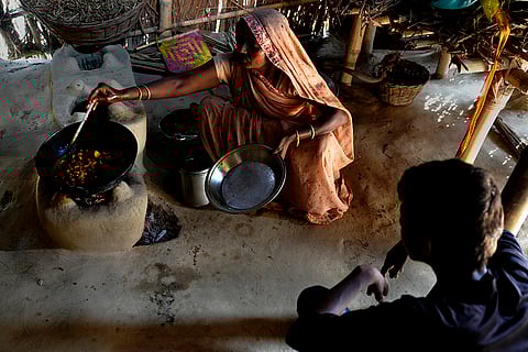 Deepak’s mother cooking food at their mud house. Though the Central government scheme mandates a house as rehabilitation measure, they haven’t got it yet.