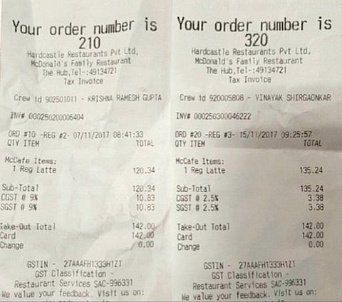 While in most of the cases, the chargeable amount of GST has gone down to 5%, many food chains continued to charge 18% still. A comparison of McDonald's bill from today and earlier this month shows a steep increase in the price of their goods.