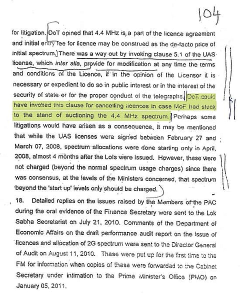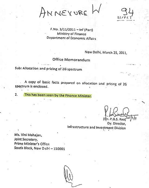 However, what is clearly known is that the backgrounder was generated on the instructions of the PMO. And the law, finance and telecom ministries were involved in the exercise. There were 20 meetings and several e-mails exchanged by those involved in putting together the draft note. But the final touches were given by the finance ministry. And the note was put up to the PMO by Dr P.G.S. Rao, deputy director, infrastructure and investment division, department of economic affairs. Crucially, Rao, in his covering note, states that the backgrounder “has been seen by the finance minister” (Pranab). The finance minister, in his September 29 press statement, said the “inference drawn in the note” that started it all was not his. Then whose was it?