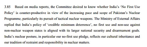 The Indian Parliament’s Standing Committee report on India-Pakistan relations mentions an interesting reason for why the country stands where it does on a no-first use nuclear policy.