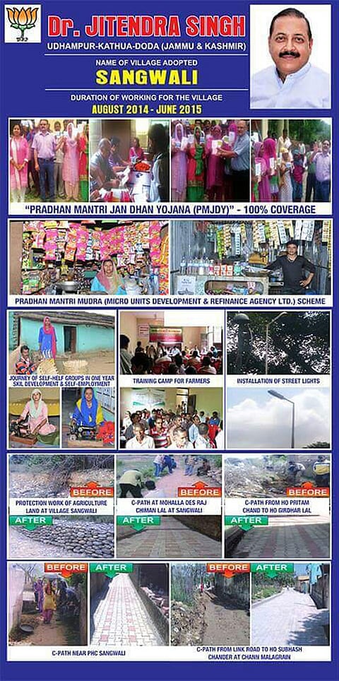Posters showing development work at Sangwali village on the Jammu-Srinagar highway occupy pride of place on the walls of the constituency office of Jammu MP and MoS at the PMO, Jitendra Singh. Those from the constituency visiting New Delhi have seen the same ‘Adarsh Gram’ posters in the minister’s North Block office, too. Residents of the ‘model village’—one of five the minister has ‘adopted’ so far—are not amused, though. Because when you scratch the surface of the ‘model’ claims, all you see is deceit.