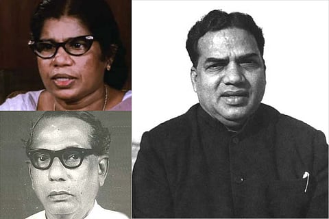 (clockwise from top left) K.R. Gowri Amma, revenue minister in the first EMS government; A.K. Gopalan, leader of the Opposition in the first Lok Sabha, 1952 and later one of the CPI(M)’s founders; Joseph Mundassery, education minister under EMS, 1957-59