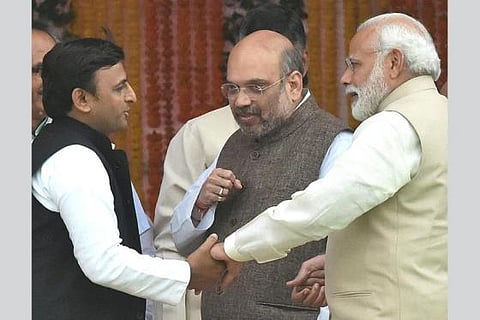 “Thoda Akhilesh ka khayal rakhiye (Please take care of Akhilesh),” the newspaper quotes the anonymous BJP leader on the exchange between Mulayam and Modi. The report adds that Akhilesh was standing in a corner of the dais and Mulayam is said to have motioned him to come meet Modi.