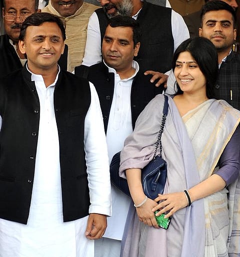 Uttar Pradesh chief minister Akhilesh Yadav addressed the media after having a quiet word with PM Modi and was spotted with wife and lawmaker Dimple Yadav.