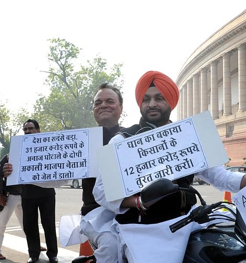 Congress MP Ravneet Singh Bittu was on a bike here, protesting against the Akali-BJP combine in Punjab with the Assembly elections not far away for the state.