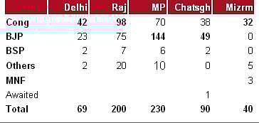 In Delhi, development may have meant the vision of a modern megalopolis, in Chattisgarh, the populist promise of rice at Rs 1 a kg, and in Madhya Pradesh, better roads. But it worked for the incumbent chief ministers of these three states -- the Congress’s Sheila Dikshit, and the BJP’s Raman Singh and Shivraj Singh Chauhan -- who have all emerged as convincing victors. On the other hand, the BJP’s Vasundhara Raje failed to deliver in Rajasthan, as did the Mizo National Front in Mizoram: in these two states, corruption and the inability to deliver ensured defeat for the sitting chief ministers.