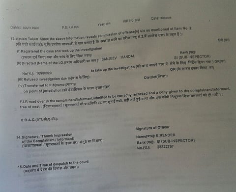 Sharma was not informed of the police complaint. He says that on the evening of March 15, policemen landed at his doorstep and asked them to accompany him to the police station without producing a warrant or any summons. After being questioned for four hours at the Kotla PS, he was handed a handwritten notice under section 41A CRPC and asked to come the next day with all the original documents.