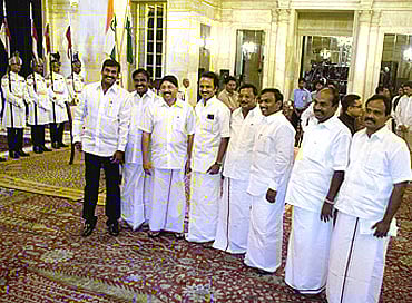A Congress leader, though, was more charitable to the octogenarian chief minister. "You should understand he is old and frail," he said. "He is no longer the strong man that he was. He is being pressurised and nagged by his family. Even though I agree that ministerial berths are decided solely to meet the expectations of the family members, there is also an implicit effort to bring about a caste balance. Raja is a Dalit, Palanimanickam a Thevar, Gandhiselvan a Goundar, Napolean a Reddiyar and Jagatrakshakan a Vanniyar."