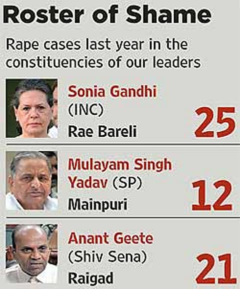 Rape happens, and with frightening regularity in the VIP constituency of India’s most powerful woman, UPA chairperson Sonia Gandhi. On December 18, she had rushed to Safdarjung Hospital to meet the 23-year-old paramedic who had been brutally gangraped two days earlier. Perhaps local Congressmen should also sensitise her to the facts in her own constituency.