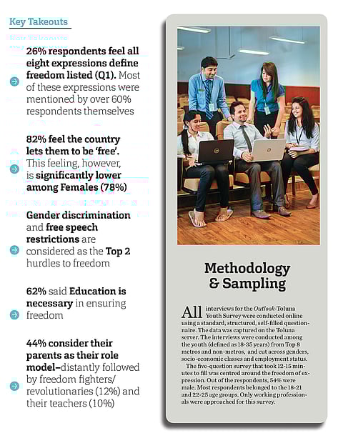 On completing the 75th year of India’s independence, we envisaged an ambitious project around India’s youth. Outlook partnered with Toluna, a leading consumer insights provider, to design and carry out a comprehensive all-India survey that took a deep-dive into how India’s youth feel about freedom.