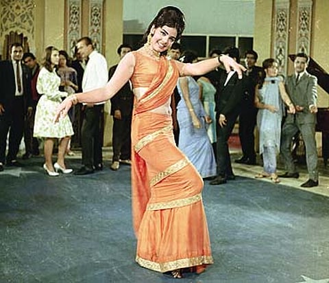The '60s brought in chic casualness—the salwar-kameez, formerly a flappy, loose, regional costume, became smart daywear. Jackie Kennedy's sack dresses inspired us to stitch up our side slits and tighten our kameezes (a la Sadhna)—we could barely hobble! Salwars too got slimmer and slimmer, metamorphosing eventually into churidars. Audrey Hepburn's Roman Holiday had everyone in pedal-pushers. Men wore drainpipe trousers. More and more women started cutting their hair, bouffants and fringes replacing neatly oiled plaits. Hipster saris, tied well below the belly button, wrapped around twice, were worn with pointed winkle-picker high heels. Heavy black eyeliner, with blue, green and gold eyeshadow, produced a generation of Cleopatras.