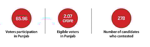 The vote share of the ruling Congress in Punjab jumped to 40 per cent in the polls as against 33.10 per cent in 2014. In the 2017 state polls, the Congress had registered a thumping victory by winning 77 assembly constituencies out of the total 117 seats in the state assembly.