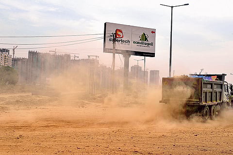Cause and effect A truck kicks off a cloud of dust in Noida. (Photograph by Tribhuvan Tiwari)