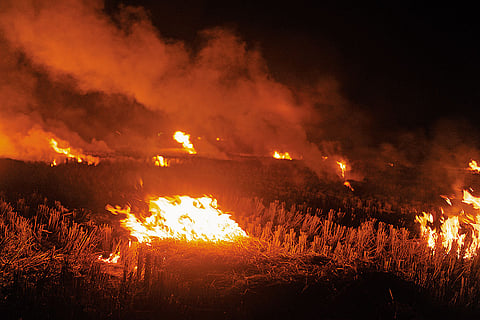 Cause and effect Farm stubble burning in Haryana. (Photograph by Tribhuvan Tiwari)