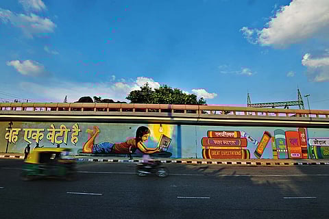 Ramcharitmanas and the Mahabharata are the first two books featured in this street art on educating the girl child