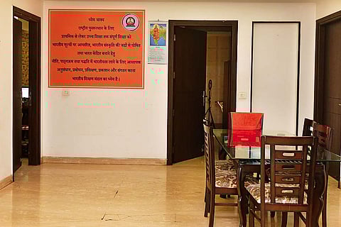 Tucked away on the second floor of a building close to a small Hanuman temple in Amrit Nagar near Delhi’s South Extension-1 is the office of the Bharatiya Shikshan Mandal, an RSS affiliate in the sphere of education. Inside, an empty chair marks the reception area and, above it, on the freshly painted wall, are three portraits: besides those of RSS founder K.B. Hedgewar and Golwalkar, there is one of ‘Bharat Mata’ sitting on a lion, with the map of ‘Akhand Bharat’ wrapped around her like a saffron sari. A rectangular saffron-coloured board on the opposite wall spells out the Mandal’s mission in Sanskritised Hindi. Translated in English, it roughly says that the Mandal aims to “Indianise” educational policy, curriculum and pedagogy, in order to infuse education, from primary to higher levels, with “Indian values” for the sake of “national regeneration”, and to ensure it is nurtured by “Indian culture” and centred on “Indian interests”.