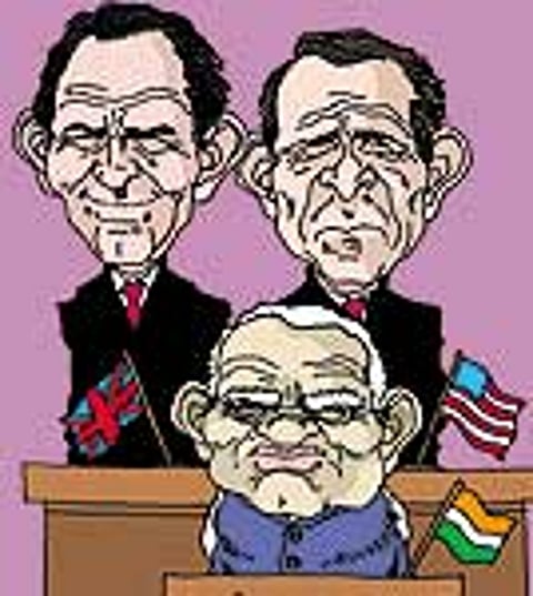 Moving right along past the 70-plus home minister and defence minister, we come to our octogenarian prime minister who makes Abraham Lincoln look like a New Age punk rocker. Archaic Atal’s still with his Ram Lila ground speeches, his ’50s bandgala and his walk—which is only slightly faster than the eternal way of life of India’s eternal villages. Poor Atalji. I love him dearly. But he’s a sepia-tinted gulab jamun in this snappy new century, when planes might be hijacked during an afternoon siesta.