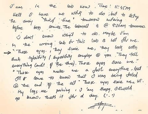 A page from IISc PhD student Ajay Sree Chandra’s diary. He committed suicide on Aug 26, ’07.