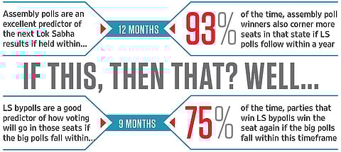 9% more seats in Parliament than in the assembly It's the domino effect: When simultaneous elections for assembly and Lok Sabha seats happen in a state during general elections, the party winning the assembly also ends up winning 9 per cent more LS seats.