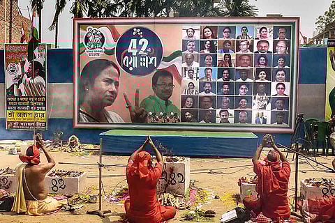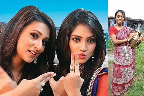 The Mimi Chakraborty-Nusrat Jahan effect has rubbed off on the Trinamool itself. After the popular Bengali actresses were fielded for the LS polls (two among those who make up the very high 41 per cent women candidates put up by the TMC), a poster shared on FB by the party's Adivasi Cell chief made an understandable error. Instead of the actual candidate from Jhargram, activist Birbaha Soren, it carried the picture of Birbaha Hansda, the megastar of Santhali cinema, reports NIE. The name means 'wild flower' in Santhali, and Ms Soren is in politics too and was once tipped to be the TMC's choice.