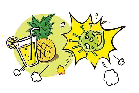 Among the many bizarre ‘cures’ for COVID-19 are a mole and turkey dish, driving tractors, inhaling smoke from a burning desert and even being poor. Compared to these remedies, the Tripura government’s vitamin-C-enriched pineapple and lemon juice seem fairly benign. The state is known for its Kew and Queen cultivars of pineapples. While there is no conclusive evidence that vitamin C boosts immunity or fights coronavirus, it certainly is more harmless and tastier than other touted remedies. What more, it helps bolster farmers’ immunity against the economic downturn caused by the pandemic.