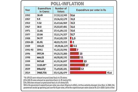 If it was booze in Punjab, it's biriyani down south. To calculate poll expenses, the EC notified the rates for 208 items, reports TNIE. The list covers—besides vehicles, flags, chairs, flex boards, LED displays and wedding hall renting et al—also mutton and chicken biriyani. That'll be Rs 200 and Rs 180 per plate, mister. Decent enough, but you can almost hear old-timers lamenting: "In MGR's time, it cost only..."