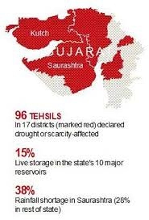 Gujarat has been receiving very little or no rainfall since 2018, leading to acute water scarcity, particularly in the villages. More than about 500 villages of 14 districts in Gujarat had to be provided water through tankers. The situation was worse in Saurashtra, Kutch and Northern Gujarat. Except the Narmada dam and the Sardar Sarovar canal, other water reservoirs remained exhausted.