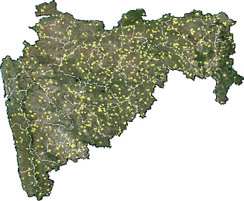 A map showing the villages in Maharashtra where The Jalyukt Shivar Abhiyan aims to supply water